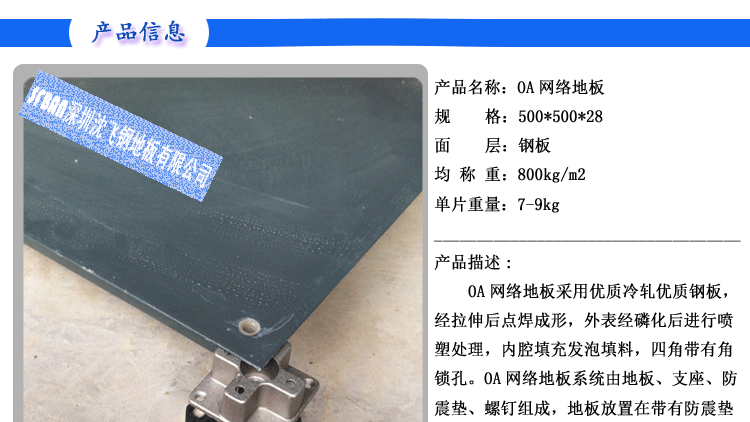 OA智能化架空活動地板(OA500) 【型號規(guī)格】 OA500×500×28 mm 【產(chǎn)品概述】 OA500智能化全鋼架空活動地板采用優(yōu)質(zhì)鋼板經(jīng)拉伸成型、點焊、...
