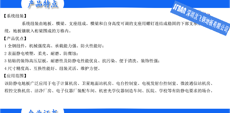抗靜電高架地板用途。 架地板用途 抗靜電地板即防靜電地板,又叫做耗散靜電地板。是一種地板,當它接地或連接到任何較低電位點時,使電荷能夠耗散,電阻在1.0x105-109之間為特征。計算機房的防靜...